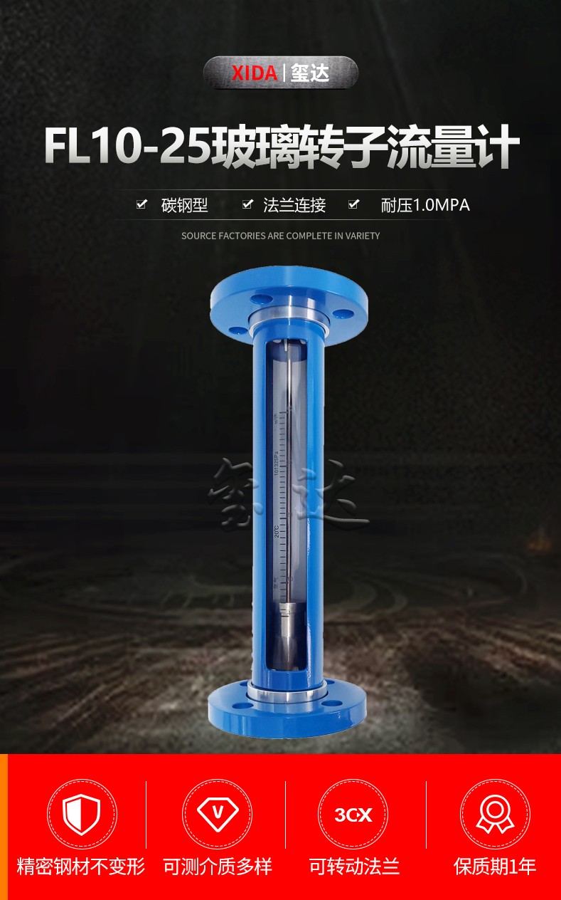 FL10-25法蘭玻璃轉(zhuǎn)子流量計(jì)FL10-25法蘭玻璃轉(zhuǎn)子流量計(jì)是一款碳鋼材質(zhì),市場通用,垂直安裝,可測量氣體or液體的瞬間流量計(jì)。1.優(yōu)勢:本款流量計(jì)刻度清晰,外形美觀,標(biāo)定出廠,活動法蘭,便于安裝,一件起售。2.性能:此款法蘭連接玻璃轉(zhuǎn)子流量計(jì)的工作壓力可達(dá)1.0MPa。法蘭… [了解更多]