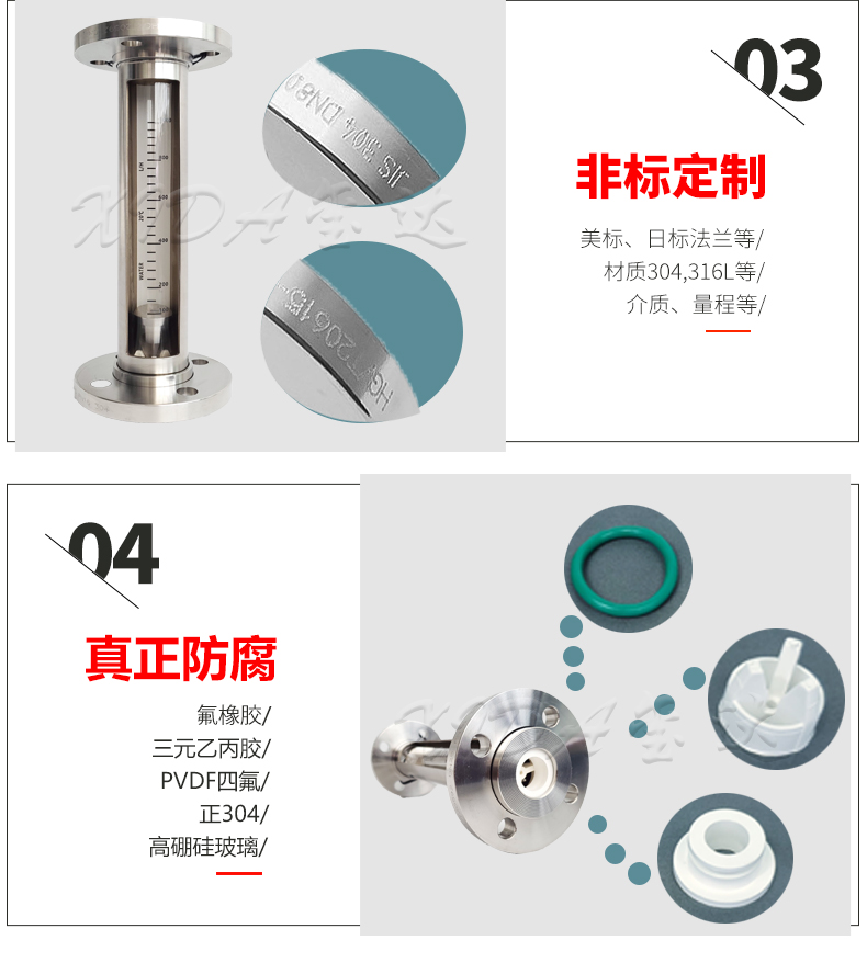 1. 優(yōu)勢:本款流量計采用外形整體304,內(nèi)部是由氟橡膠,PVDF和高硼硅玻璃組成的。既美觀又實用。