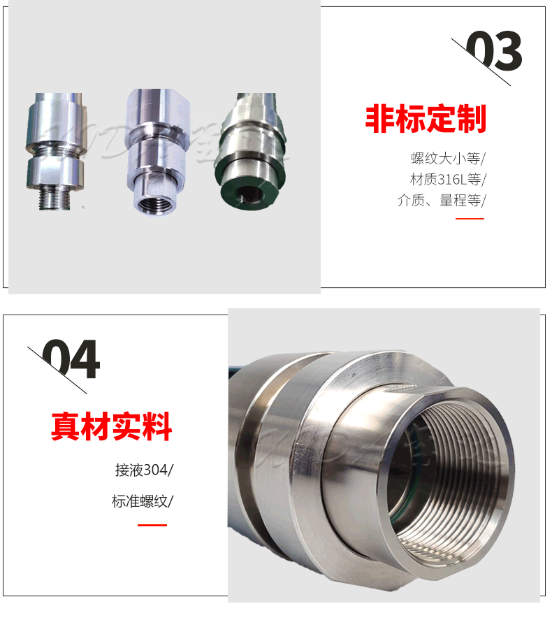 ①接受定制定做:其他螺紋尺寸(NPT1/2,G3/8,外螺紋等)