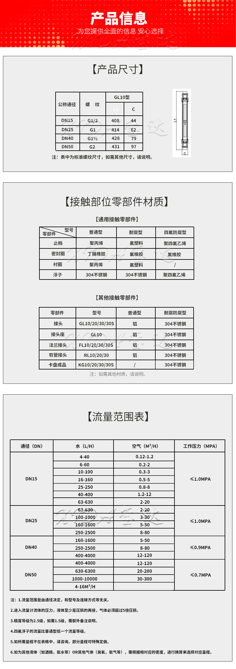 GL10-40F防腐玻璃轉(zhuǎn)子流量計(jì)介質(zhì)及量程(提供指定介質(zhì)及量程,按需生產(chǎn))