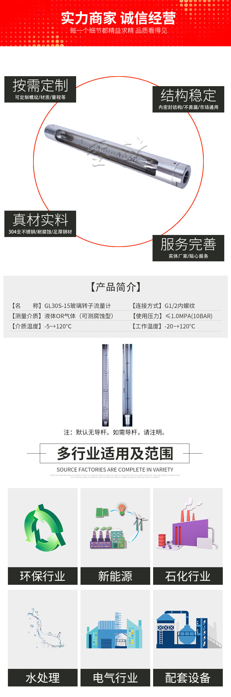 GL30S-15不銹鋼玻璃轉(zhuǎn)子流量計(jì)是璽達(dá)儀表生產(chǎn)銷售的一款耐腐蝕,耐高壓,耐高溫,一件起售的轉(zhuǎn)子流量計(jì)。璽達(dá)儀表生產(chǎn)銷售的流量計(jì)適用于環(huán)保設(shè)備,化工企業(yè),石油企業(yè),電氣行業(yè)等。本公司更有多種機(jī)械設(shè)備,滿足客戶非標(biāo)定制。璽達(dá)儀表致力于把控品質(zhì),滿足需求,讓客戶能夠無憂購買。本公司作為生產(chǎn)廠家,擁有標(biāo)定設(shè)備以確保準(zhǔn)確度。。江蘇璽達(dá)儀表有限公司為您提供貼心服務(wù)。了解更多,服務(wù)更多。