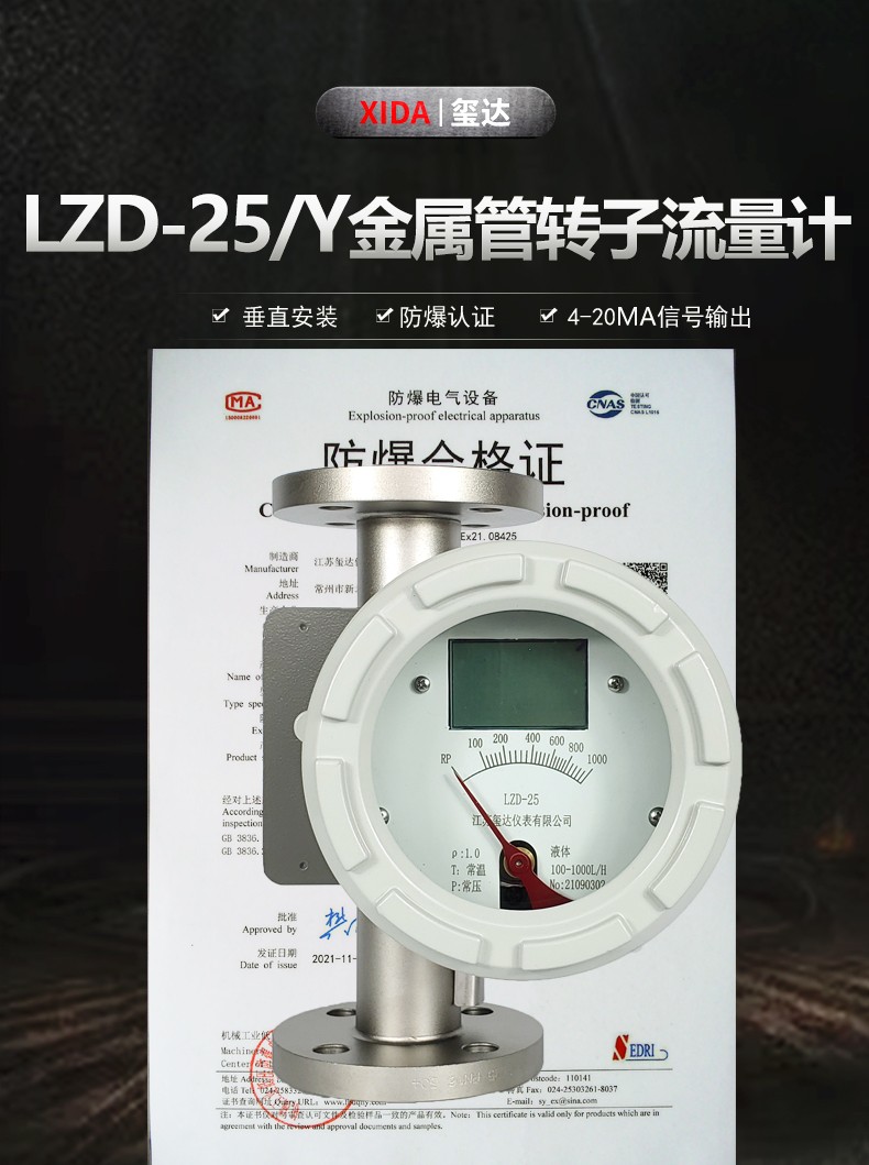 江蘇璽達儀表有限公司擁有專業(yè)的加工設備,LZD-25/Y金屬管轉子流量計擁有防爆合格證,為您的安全保駕護航。