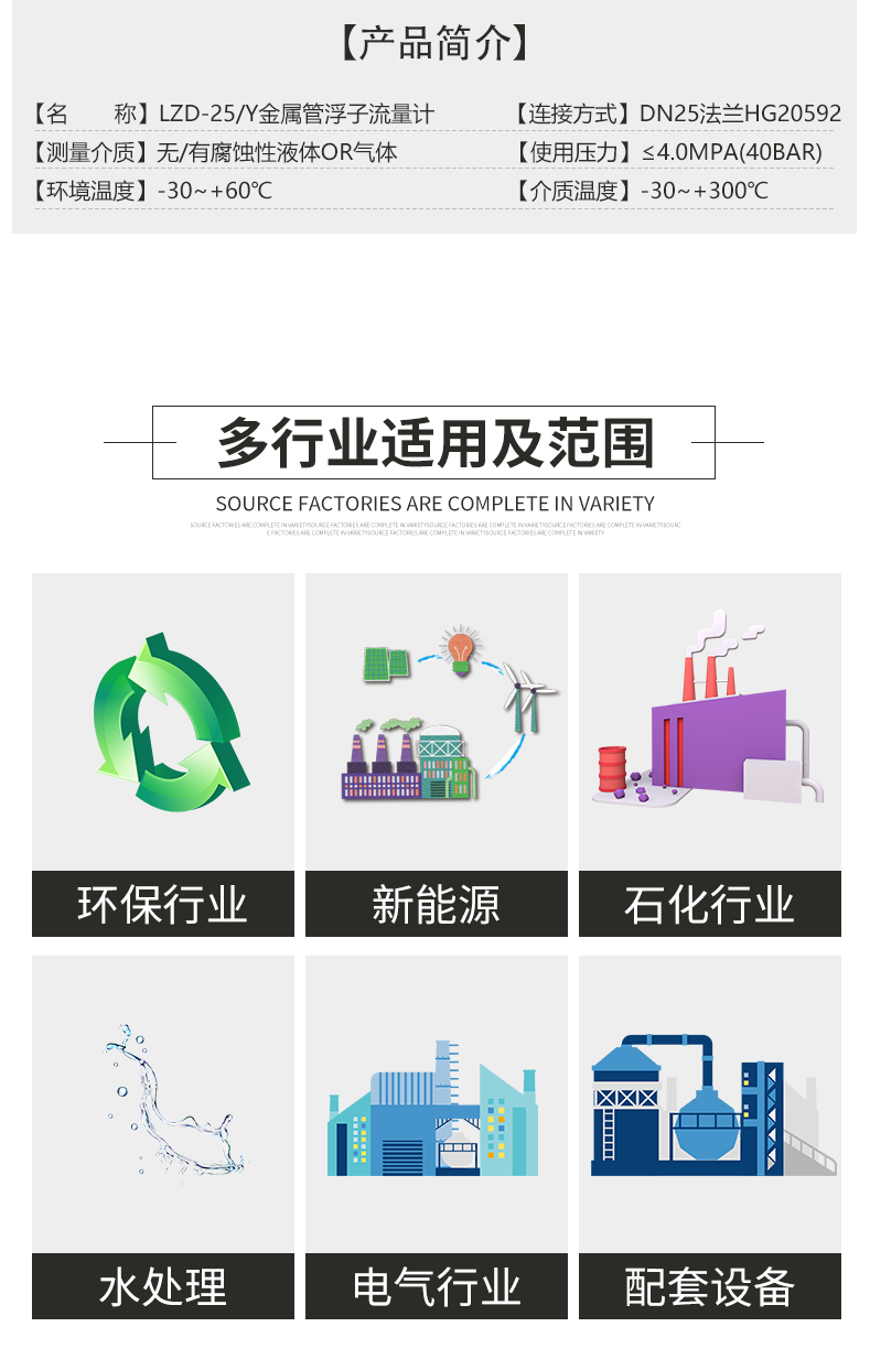 金屬管浮子流量計以其優(yōu)良性能和可靠性,性價比,在石化、鋼鐵、電力、 冶金、輕工、食品、制藥、水處理等行業(yè)得到了廣泛的應用。